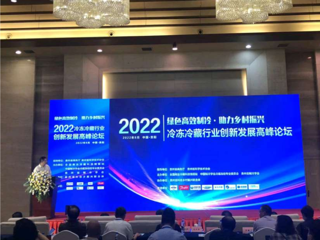 2022年冷冻冷藏行业创新发展高峰论坛于2022年08月29日在贵州省贵阳市保利国际温泉酒店召开。贵州省商务厅一级巡视员黄筑筠、中国制冷学会特邀副理事长孟庆国、全国商业冷藏科技情报站理事长邱成、贵州省制冷学会执行理事长刘国祥、中国科学院理化所研究员田长青以及各位专家、学者出席本次会议,全国商业冷藏科技情报站站长、中国制冷学会冷藏冷冻专业委员会秘书长尹从绪主持会议,本次会议以“绿色高效制冷,助力乡村振兴”为主题,会议上各位专家就在绿色发展、双碳经济背景下的冷链技术进行交流和探讨。
