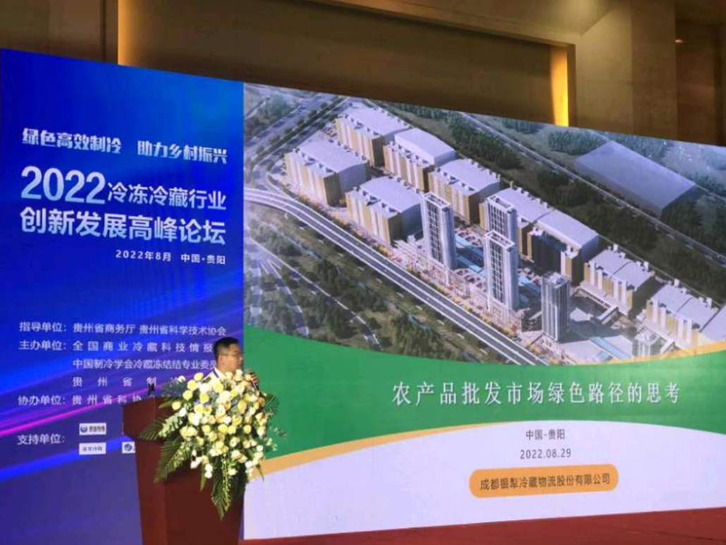 本次会议中成都银犁代表就"农产品批发市场绿色发展路径的思考"发表重要讲话,成都银犁"大型多层土建库外保温技术"在国内实现开创性突破,相同条件下较传统冷库能耗降低25%以上,在冷库屋面安装大型分布式光伏电站,年发电量110万kw·h以上,成都银犁就已践行的绿色路径和正在践行的绿色路劲进行探讨。