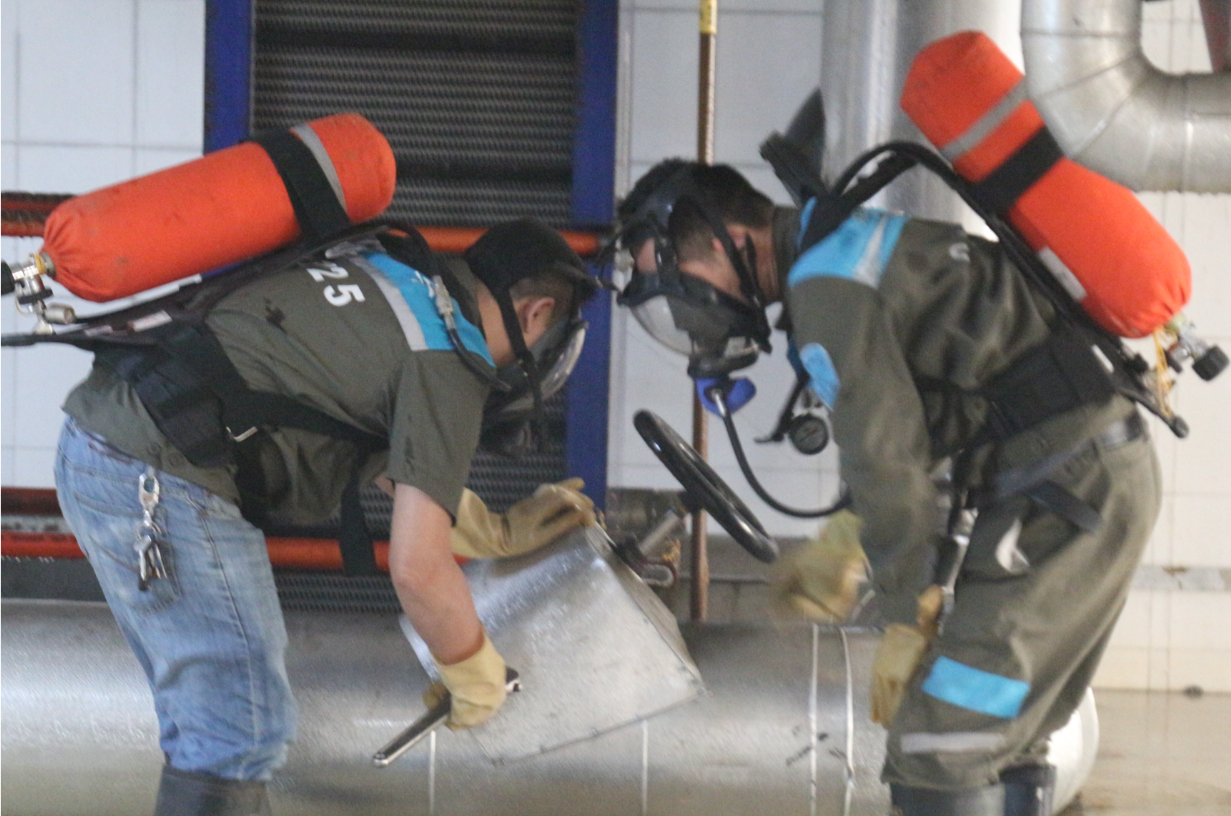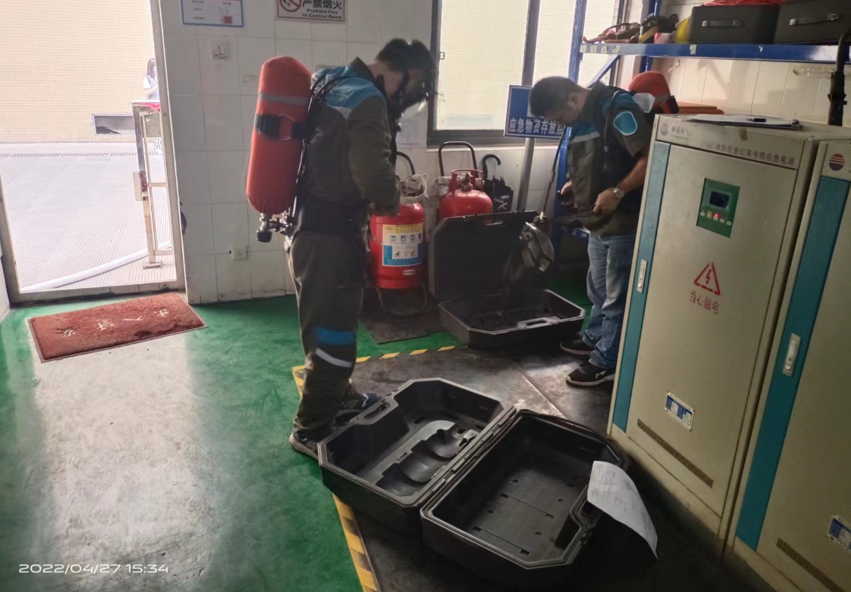 2022年4月27日下午15:30,公司安委办组织相关部门人员在一期机房进行液氨泄漏及灭火救援现场处置方案应急演练。本次演练是为了增强在岗员工的应急处置能力,提高应急相关专业知识,打造一支具备专业性、实战性的应急救援队伍。