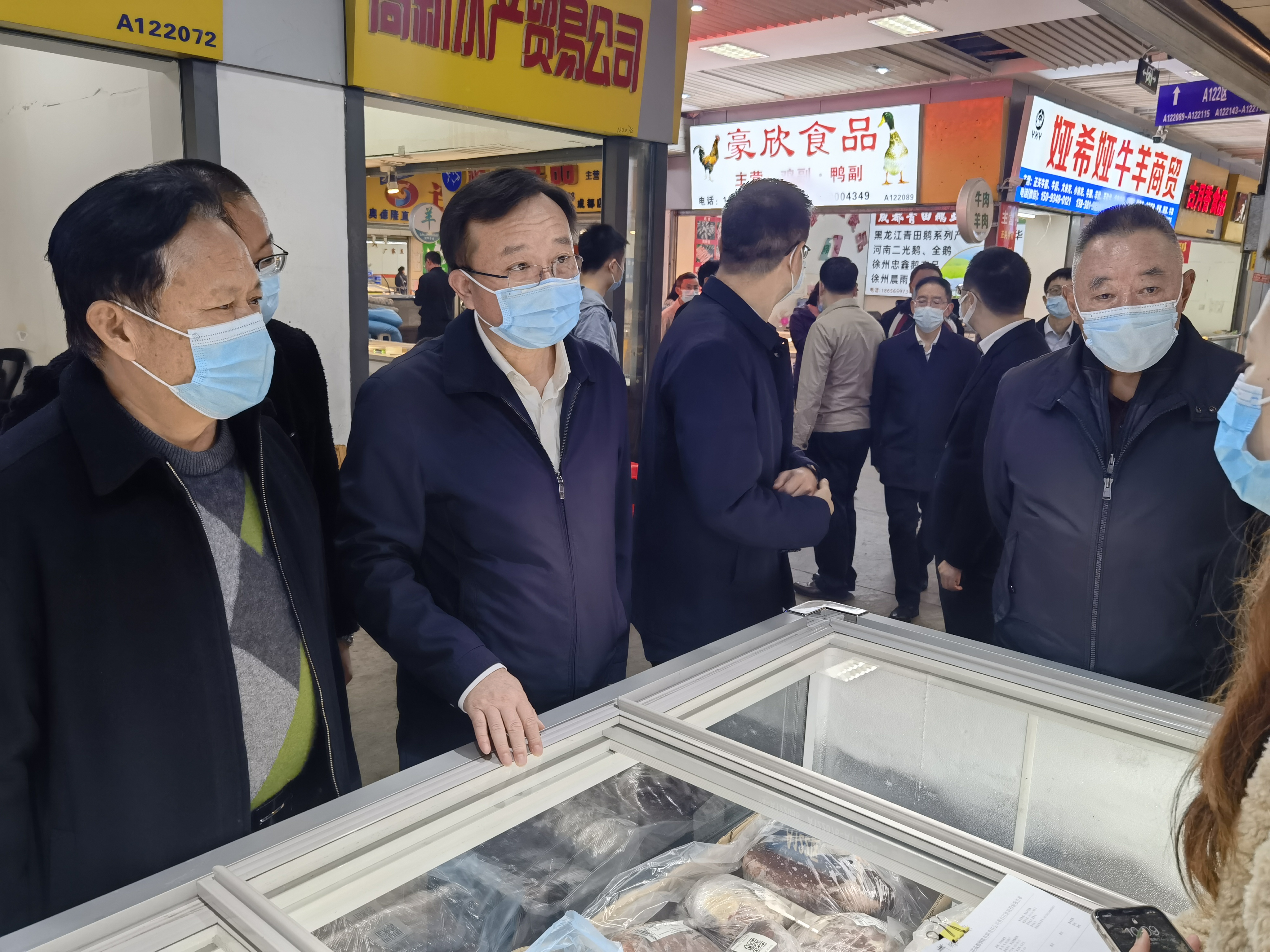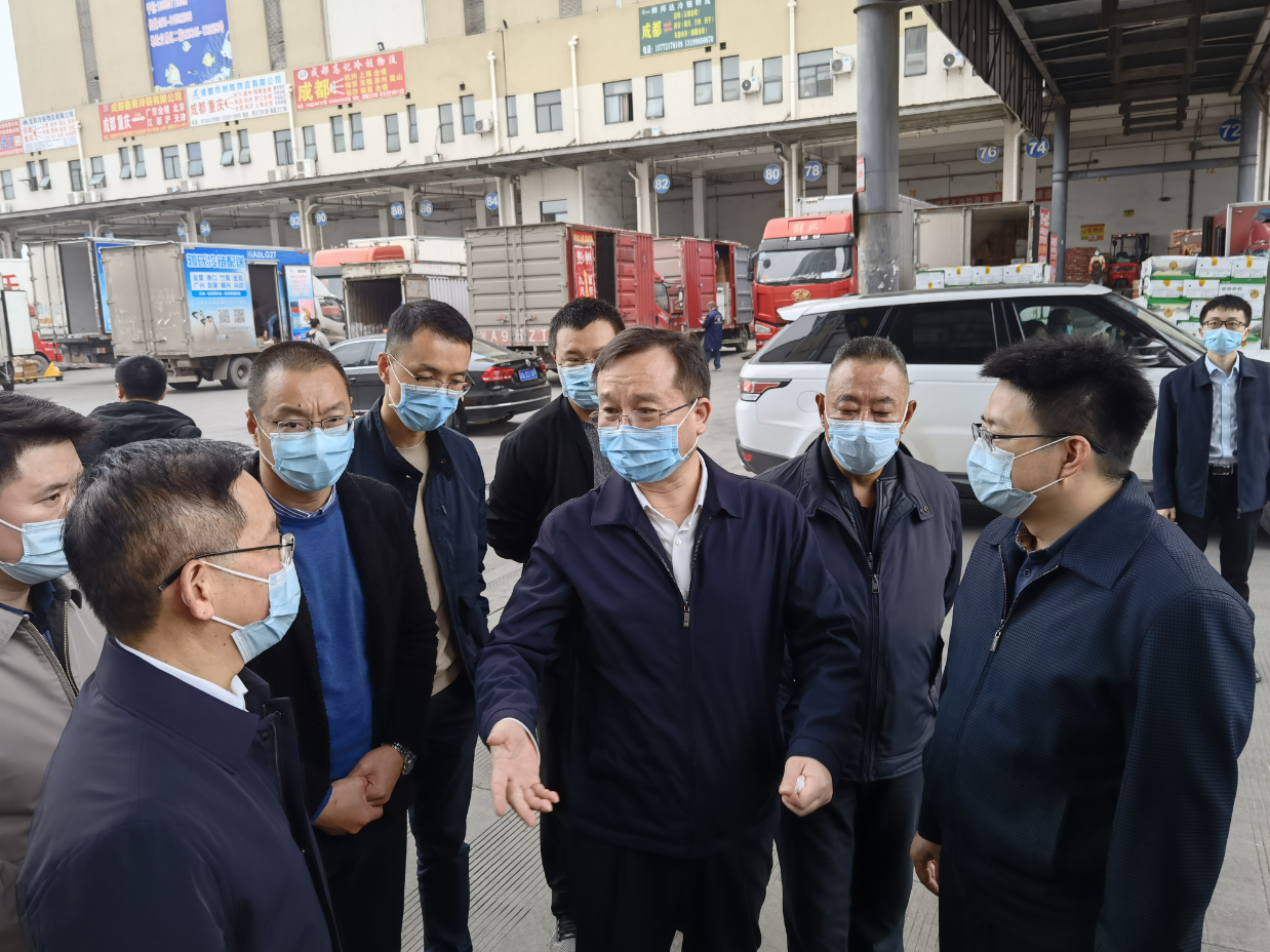 近期全国各地疫情形势严峻,2021年11月6日上午,成都市市委常委、副市长程伟一行在青白江区委书记池勇、成都银犁冷藏物流股份有限公司董事长谢彬陪同下到银犁视察疫情防控以及食品安全工作,对银犁市场疫情防控工作以及食品安全工作的部署进行了解,并对疫情防控提出相应要求。