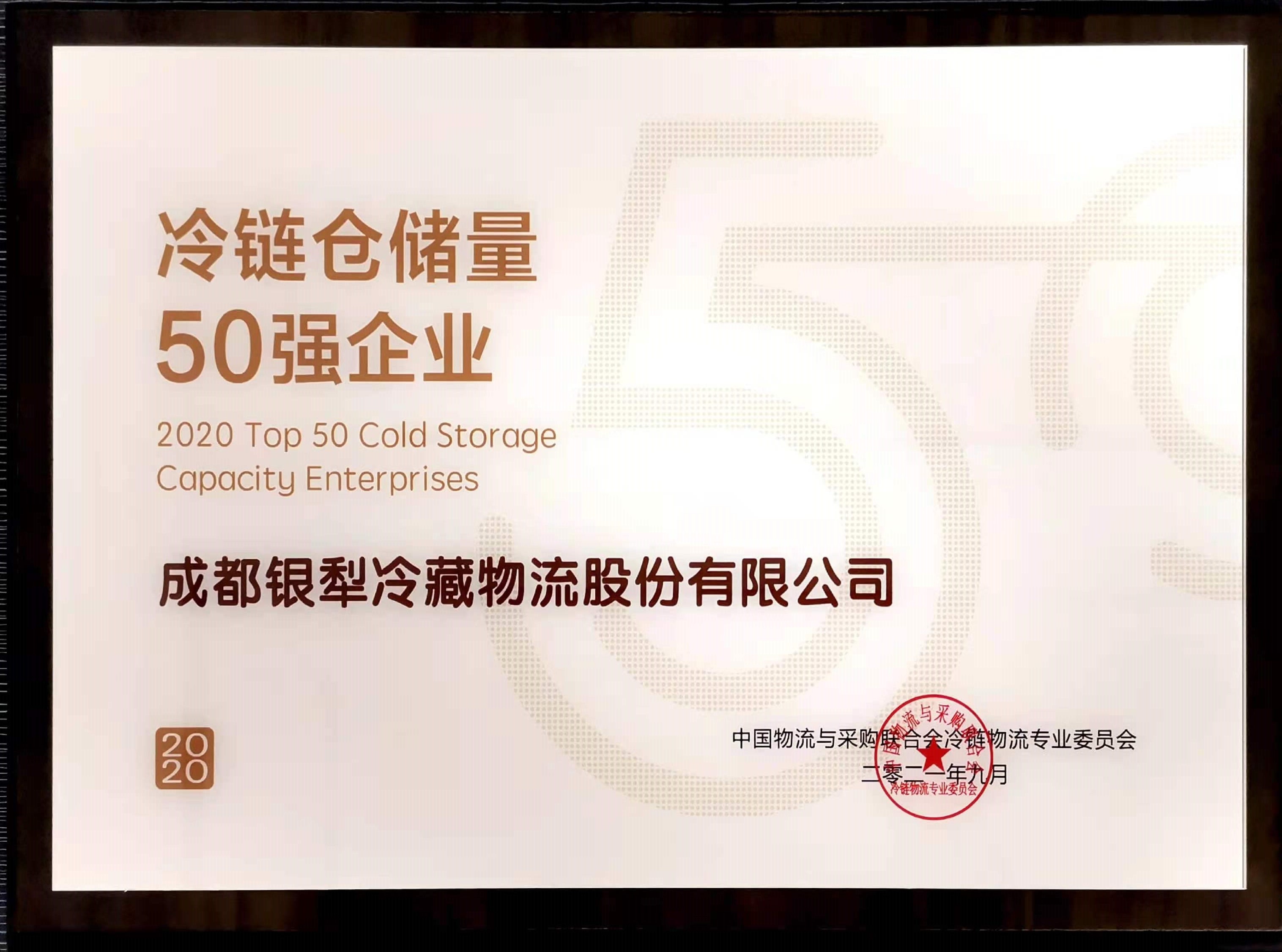 成都银犁荣获“2021年冷链仓储量50强企业”
