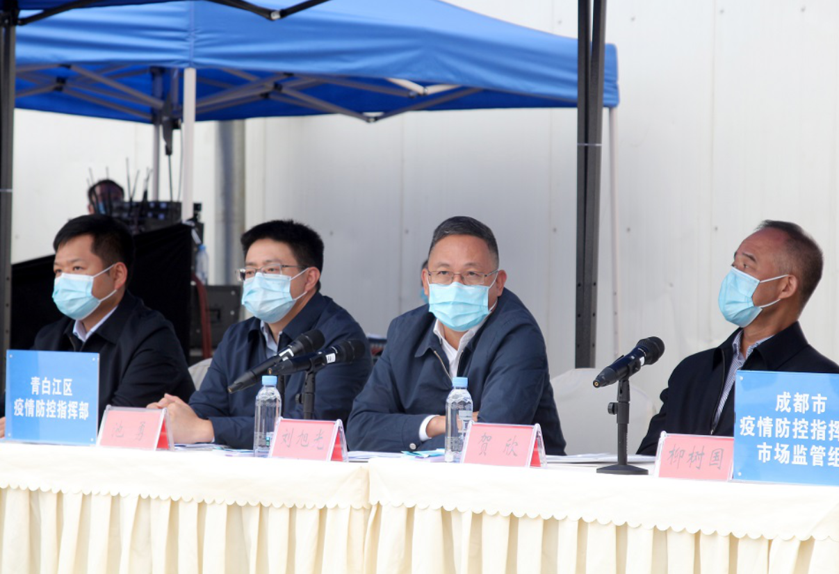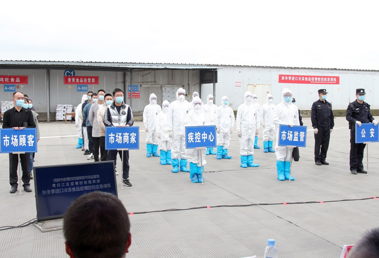10月19日,成都银犁在园区在市场C1区开展秋冬季进口冷冻食品疫情防控应急演练。此次演练成都市副市长刘旭光,青白江区区委副书记、区长池勇参加演练。