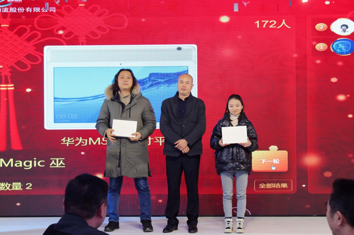 抽奖环节,本次年会共设置三等奖10名、二等奖3名和一等奖2名,在抽奖期间穿插有奖问答和游戏,场面热闹非凡。