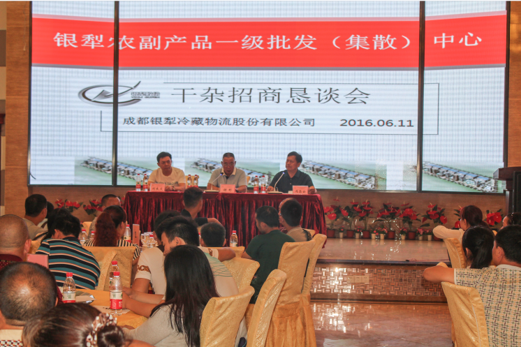 2016年6月11日,银犁干杂招商恳谈会顺利召开,来自五块石干杂市场的近千户商家汇聚青白江成都银犁公司实地考察,深入了解银犁农副产品批发中心的发展现状。