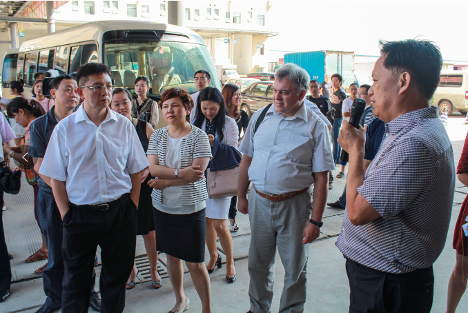 乌兹别克斯坦、俄罗斯、格鲁吉亚、阿塞拜疆等欧亚国家驻华大使,商务部欧亚司、四川省商务厅、成都市物流办、青白江区委领导陪同考察。