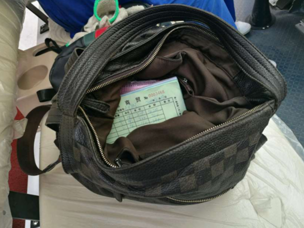 2018年4月18日下午17:35分,黄强商贸老板焦急而又兴奋的在二号连廊下等待银犁摆渡车的到来。原来当天下午16:30左右,黄先生乘坐银犁摆渡车由二号连廊至水产市场停车场时,不慎将手提包遗忘在摆渡车后排座位上,包里有现金21600元、货单及银行卡数张、除此之外还有行驶证、驾驶证、身份证等各种有效证件。