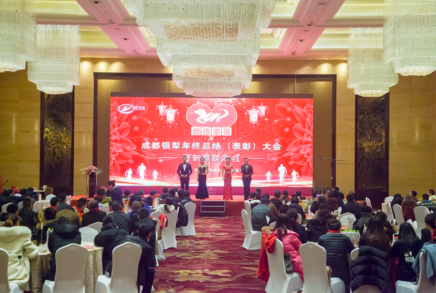 九州日月开春景,四海笙歌颂狗年。2018年2月9日(星期五)成都银犁冷藏物流股份有限公司在成都保利皇冠假日酒店举办了一场以”创造幸福”为主题的“2017年度年终总结表彰大会暨新春联欢会”。董事长谢彬,执行董事冯昌云,董监事会领导刘良文、赵仙云(戴舜波)、王丙良、封海全、朱小红(陈荣华)、唐可俊、吴宗军(吴宗清)、乔金龙出席了此次年会盛典。