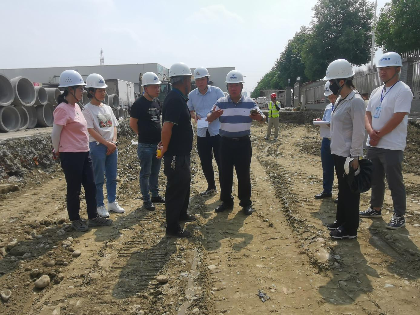 董监事一行首先视查了腌腊交易区雨污水管改造施工现场,因原雨污水管标高及坡度不满足现有使用要求,故进行升级改造。目前污水管已埋完,准备回填道路基础,后期将进行天燃气、强弱电、雨水管等所有管道的铺设。