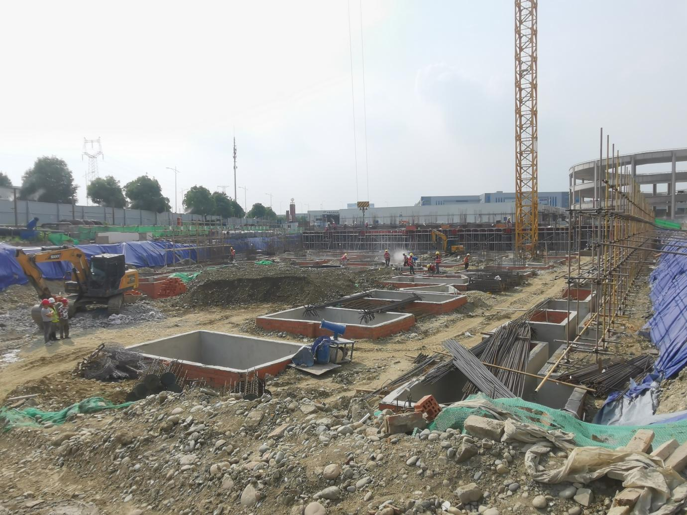 分拨中心工程桩已完成,进行承台施工