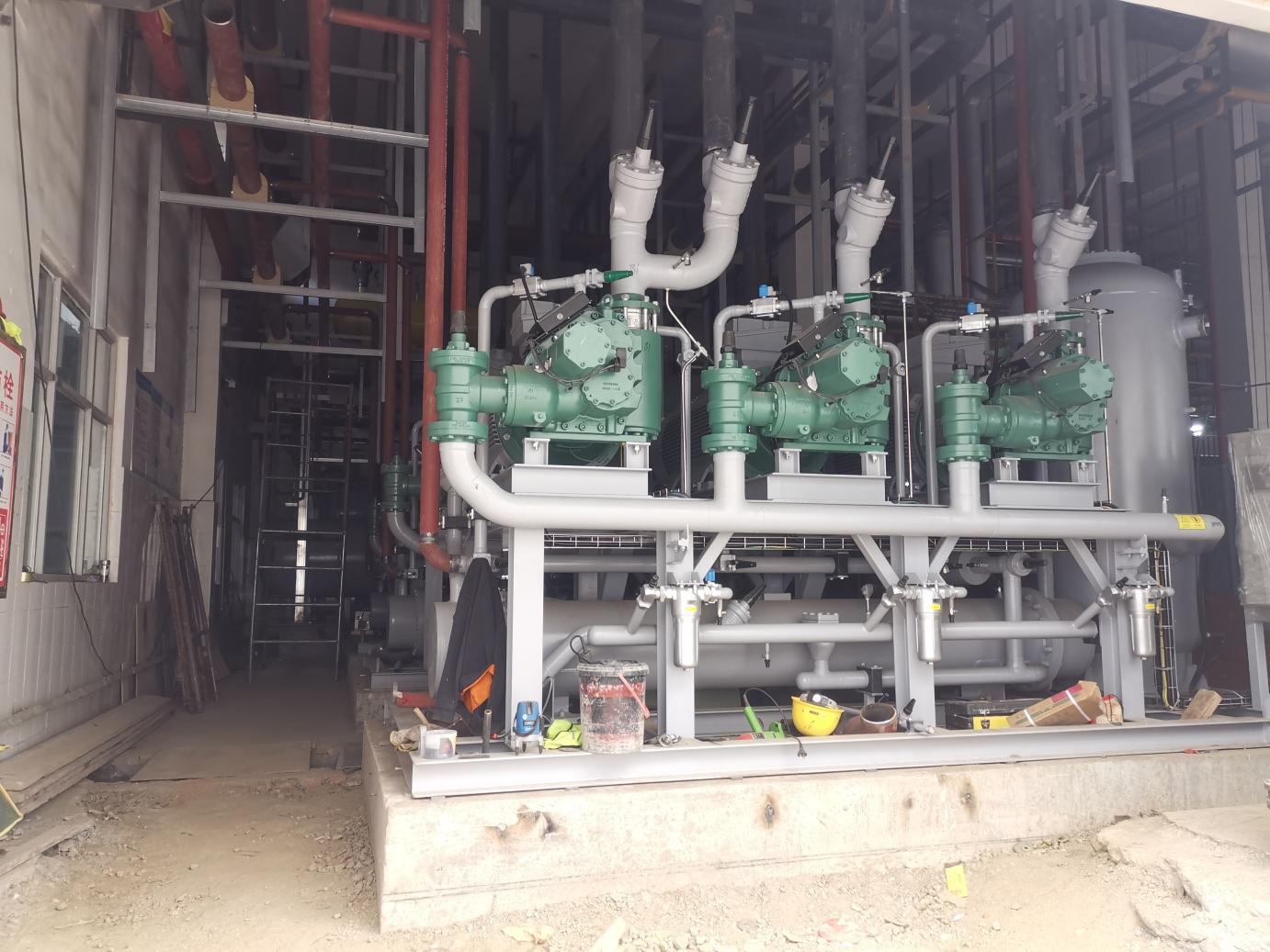 机房内螺杆压缩机组安装完成