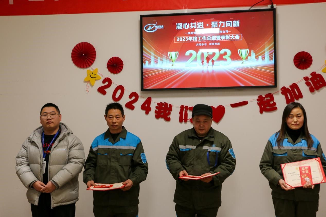 2024年1月27日,以“凝心共进,聚力向新”为主题的2023年终总结暨表彰大会顺利召开。公司董事长谢彬、执行董事冯昌云、各部门负责人及其他管理员、部分一线员工代表参加。